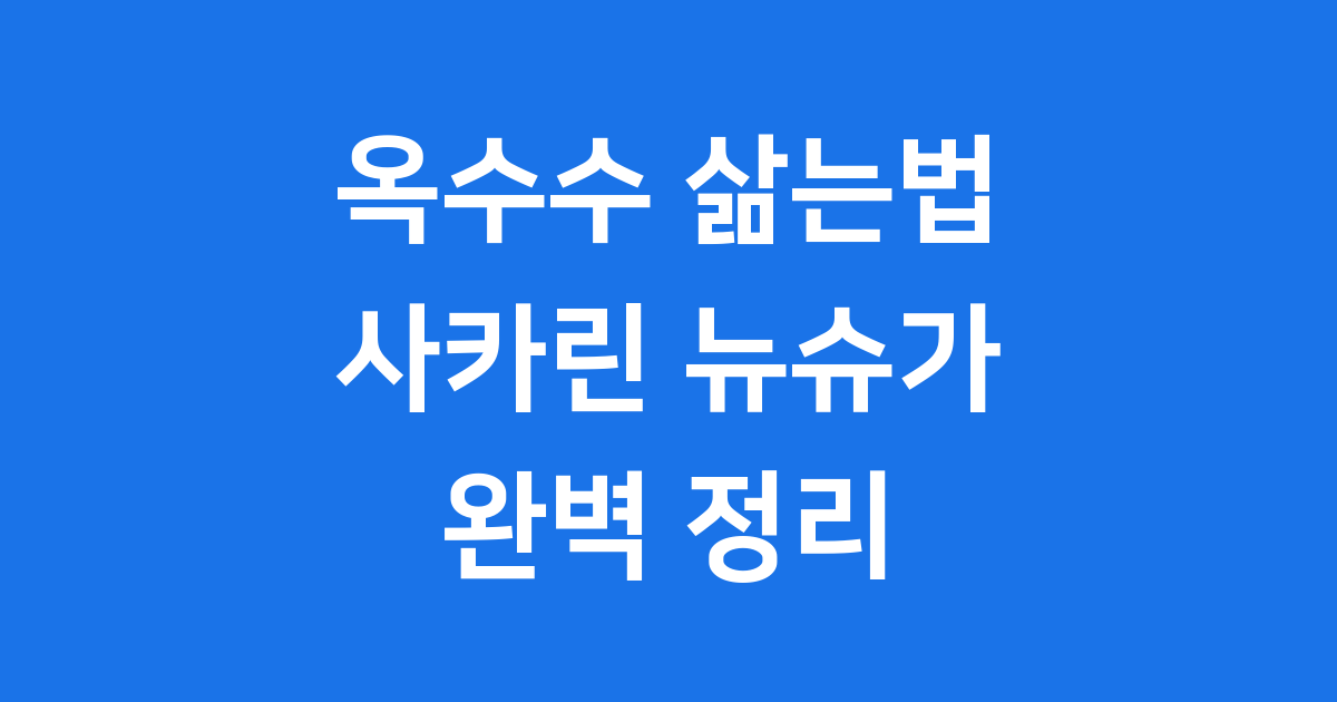 오늘은 여러분의 고민을 싹 해결해 줄 맛있는 옥수수 삶는법을 알려드릴게요! 사카린과 뉴슈가의 차이점부터, 재료 준비, 황금 시간, 그리고 쫄깃한 식감까지 완벽하게 만드는 비법을 저와 함께 알아봐요. 🌽