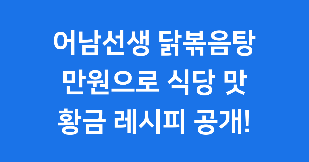 그런데 말이죠, KBS ‘신상출시 편스토랑’에서 배우 류수영 님, 일명 어남선생 닭볶음탕 레시피가 공개된 후 제 고민이 싹 사라졌답니다. 단돈 만원으로 식당 닭볶음탕 맛을 낼 수 있다니, 정말 놀랍지 않나요? 오늘은 그 비법을 제가 하나하나 자세히 알려드릴게요. 😊